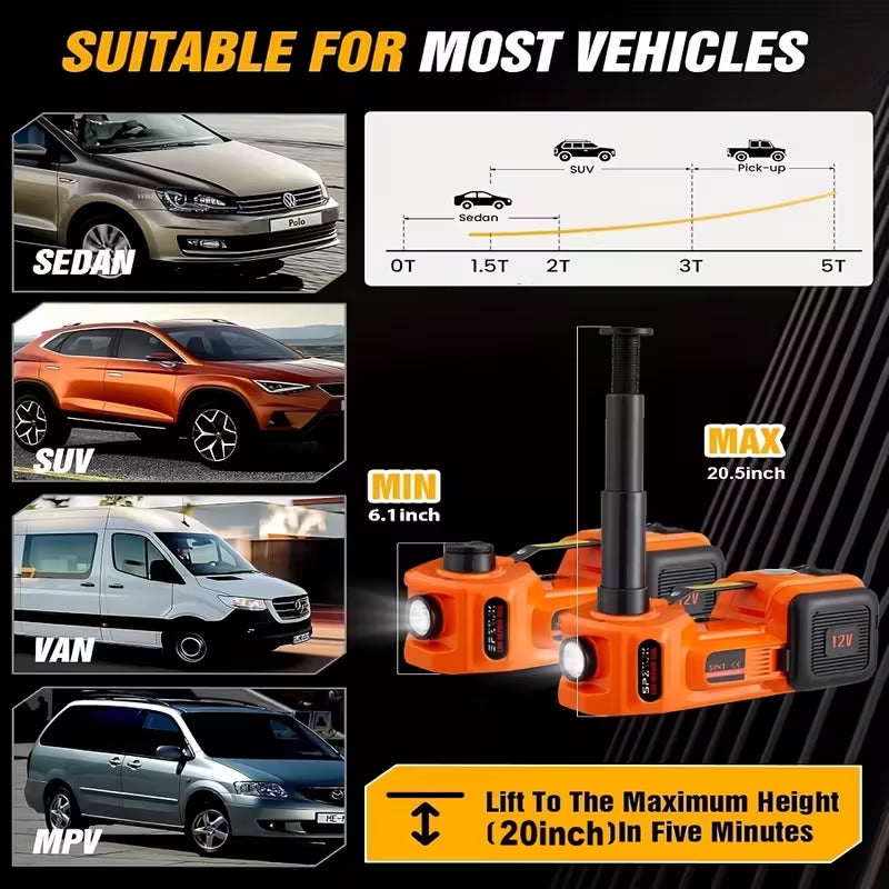 Yes — this electric jack can safely lift up to 5 Tons, perfect for cars, SUVs, vans, and caravans.